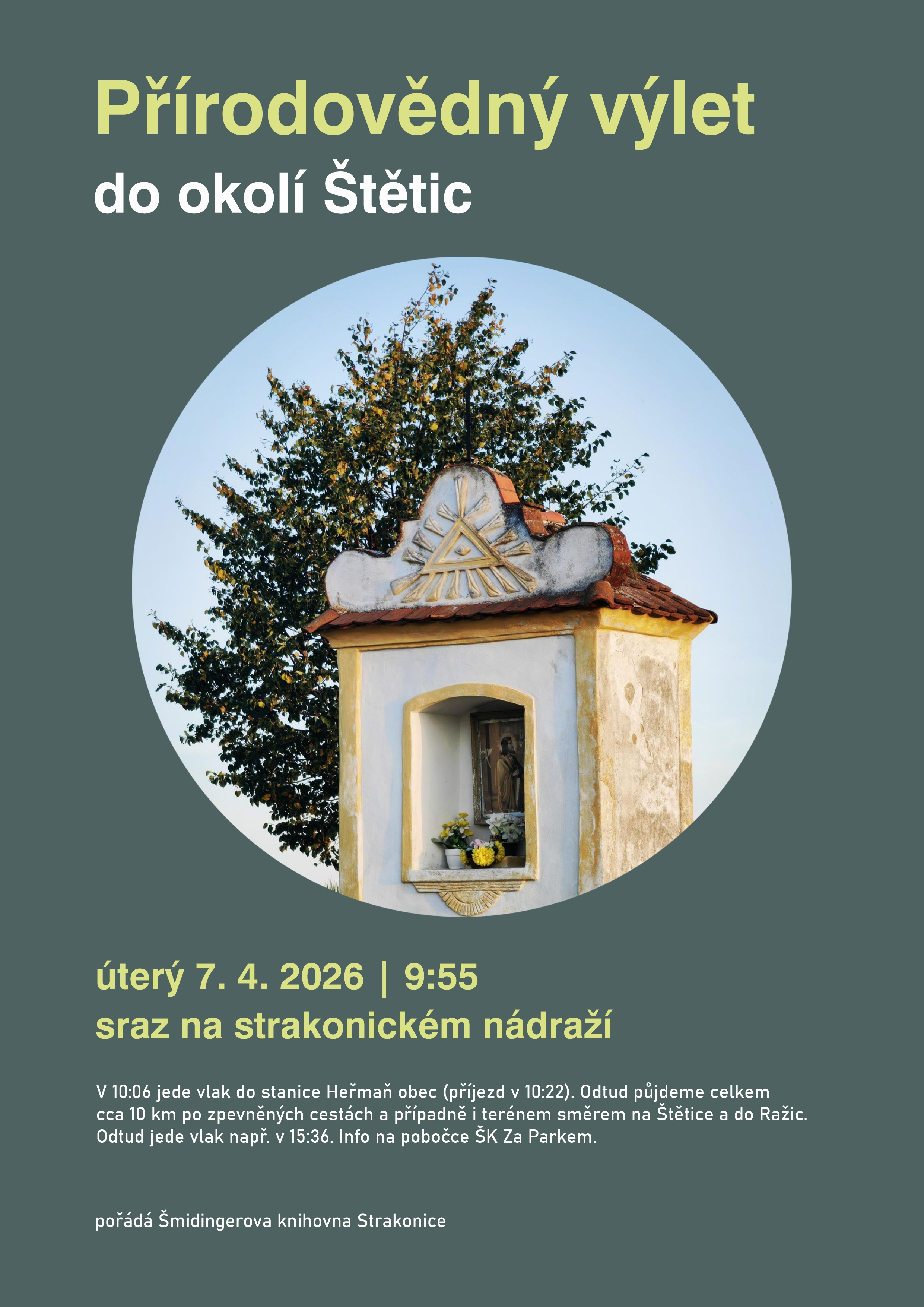 Odtud půjdeme celkem cca 10 km po zpevněných cestách a případně i terénem směrem na Štětice a do Ražic.