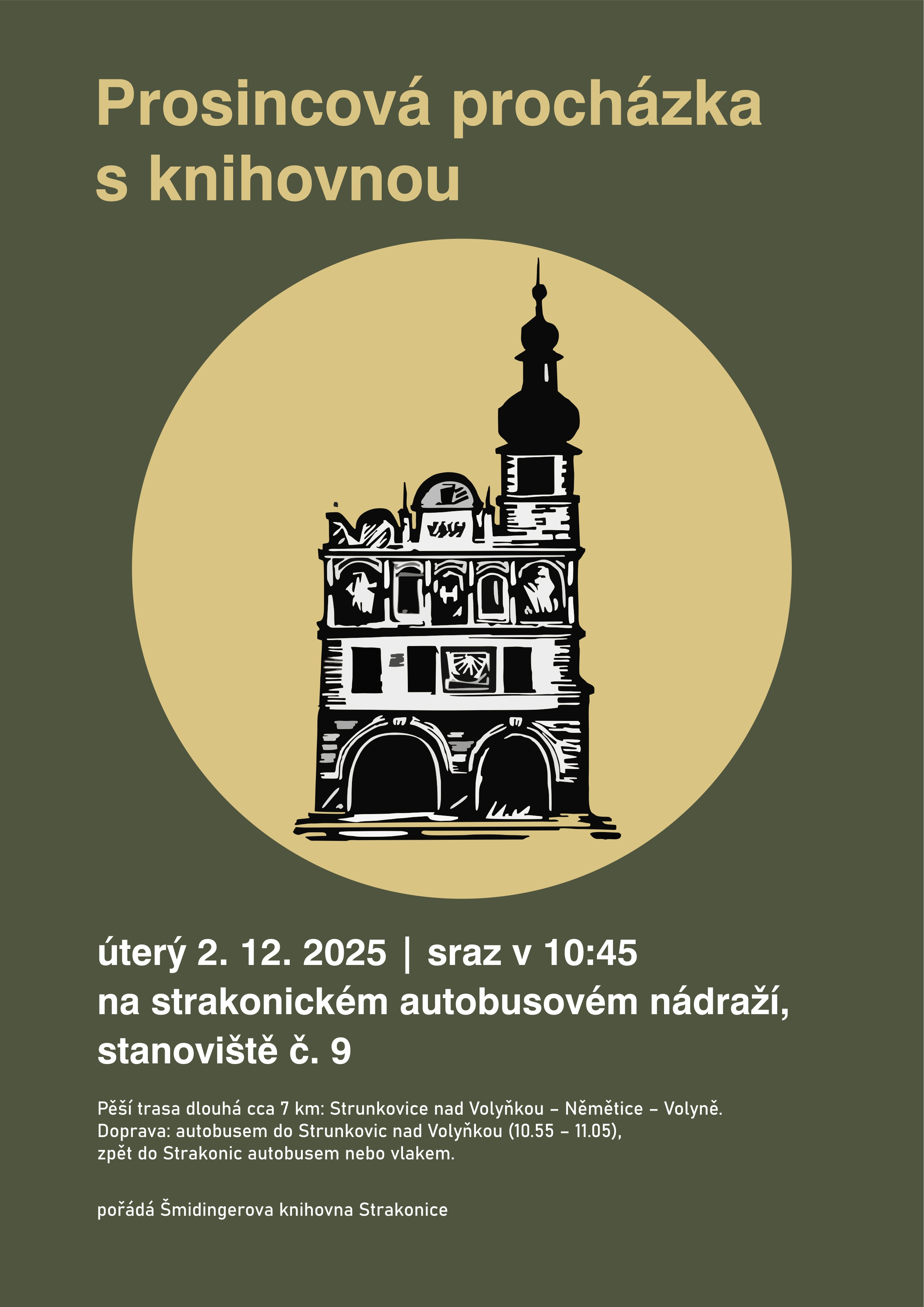 Doprava: autobusem do Strunkovic nad Volyňkou (10.55 – 11.05), zpět do Strakonic autobusem nebo vlakem.